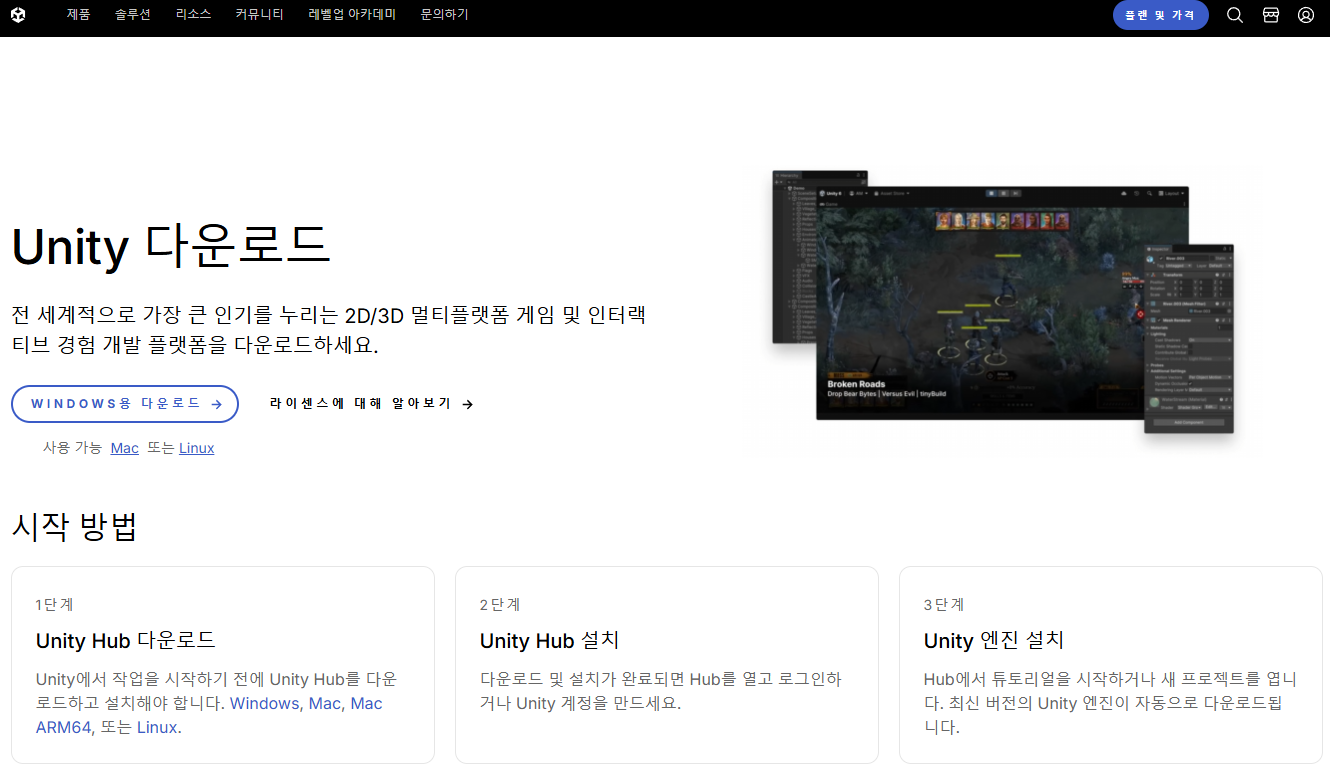 마지막으로 Unity hub 다운로드