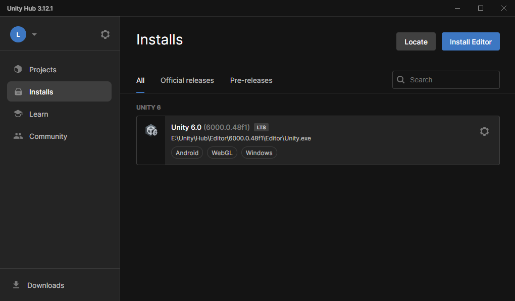Unity hub를 받고 Unity 6.0까지 다운로드 완료