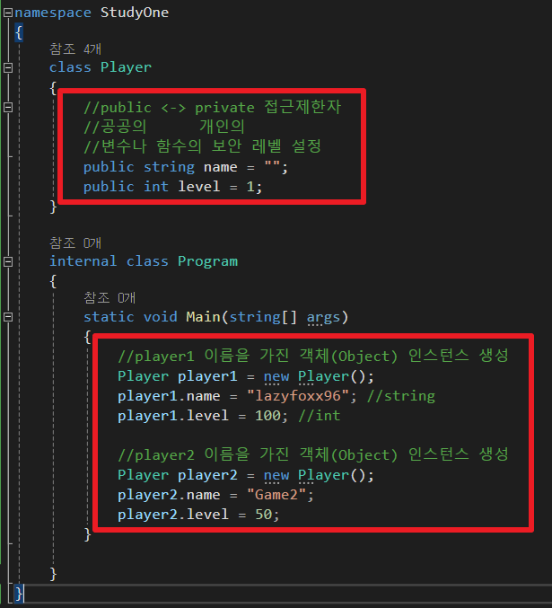 public, private 두 가지 제한자에 대해 확인하고 class를 생성해 객체 인스턴스 생성