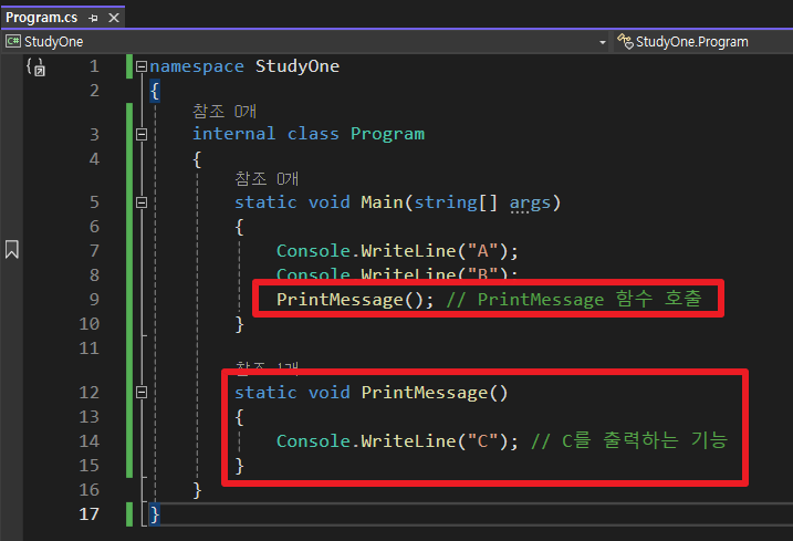함수를 만들어보고 Main함수에서 함수 호출