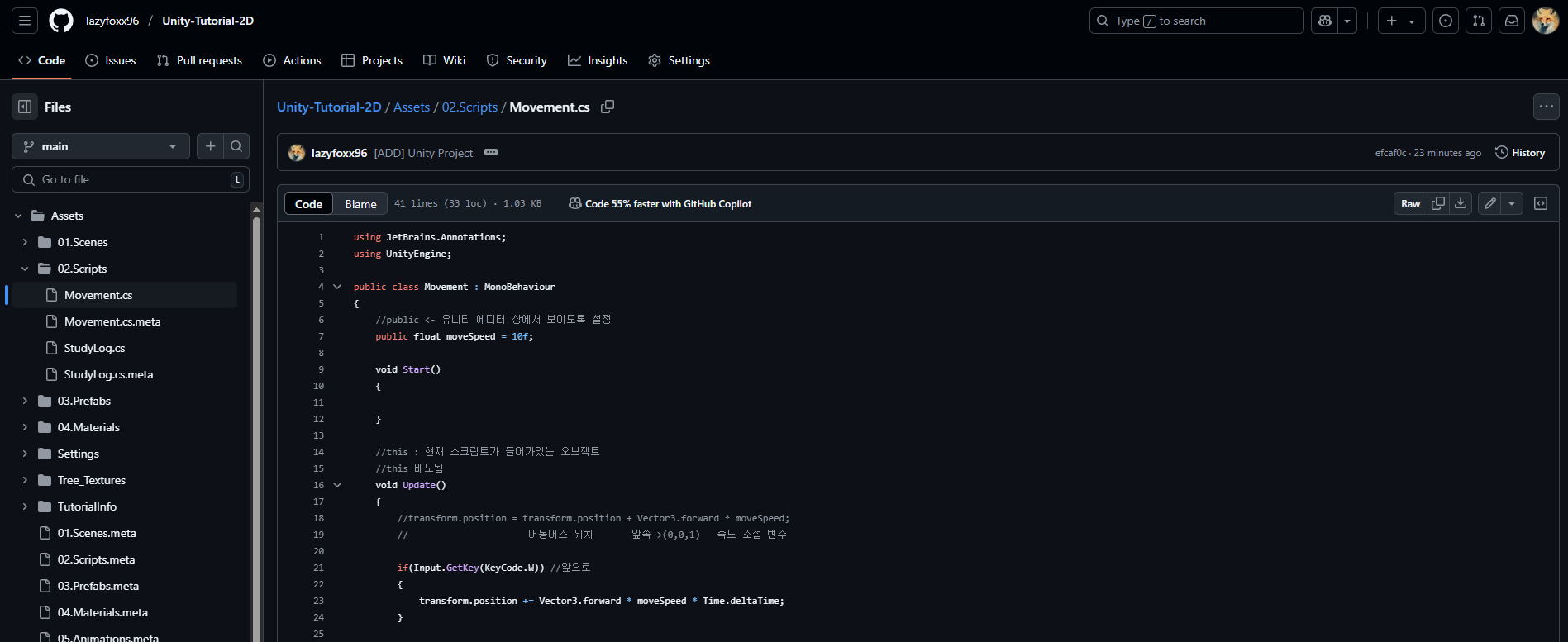 - 키보드 입력 처리 방법과 Time.deltaTime을 통한 일관된 움직임 구현