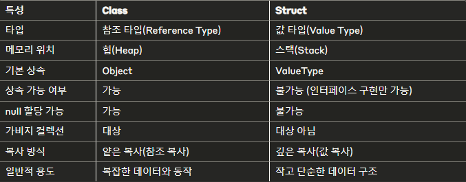 - 클래스와 구조체의 차이점과 메모리 할당 방식 기초