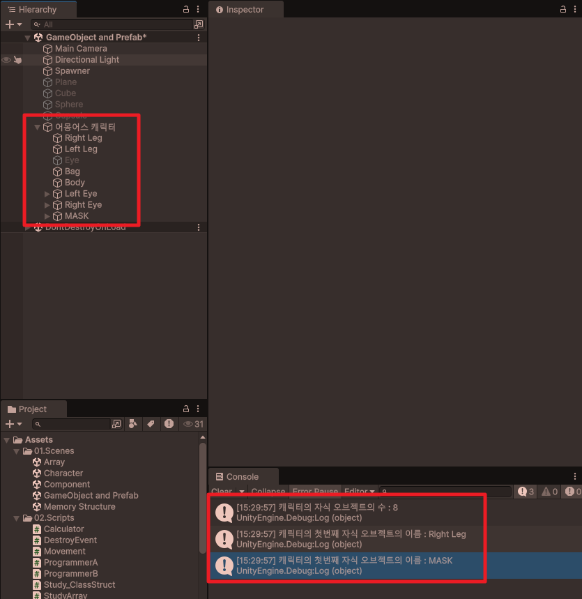 오브젝트의 자식 오브젝트 수와 그 오브젝트들을 불러오는 GetChild와 childCount