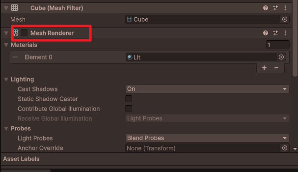 //obj의 MeshRenderer에 접근해 활성상태를 false로 변경