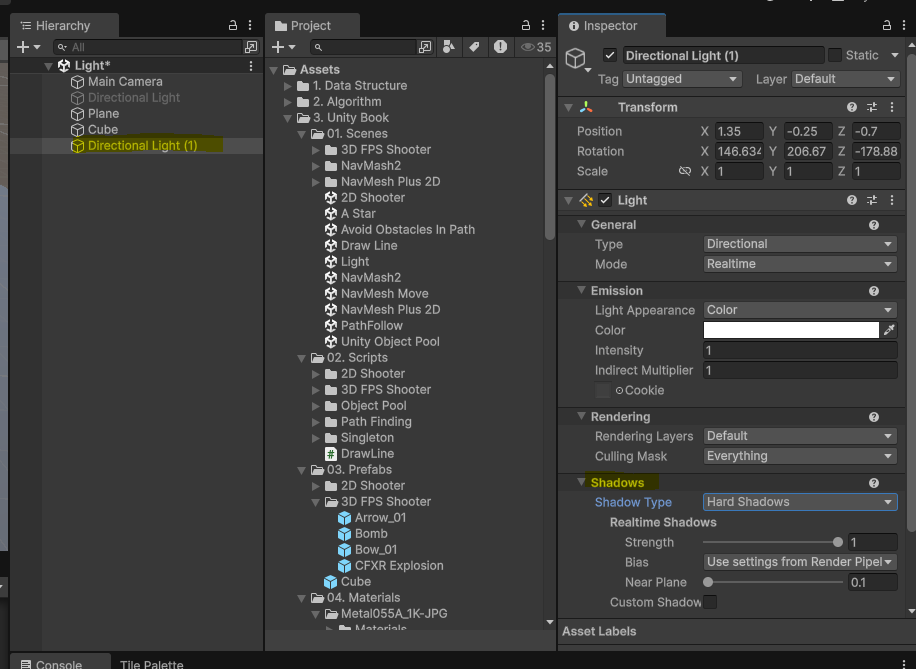 Light, Shadows는 전체적으로 무겁기때문에 신경써서 만들어야함